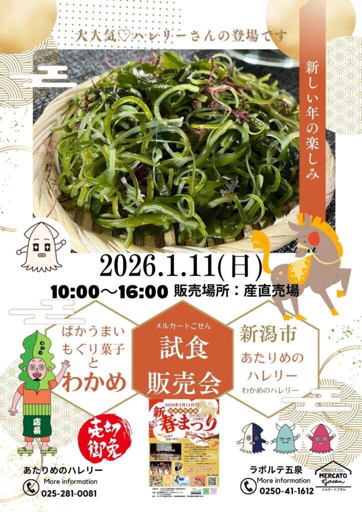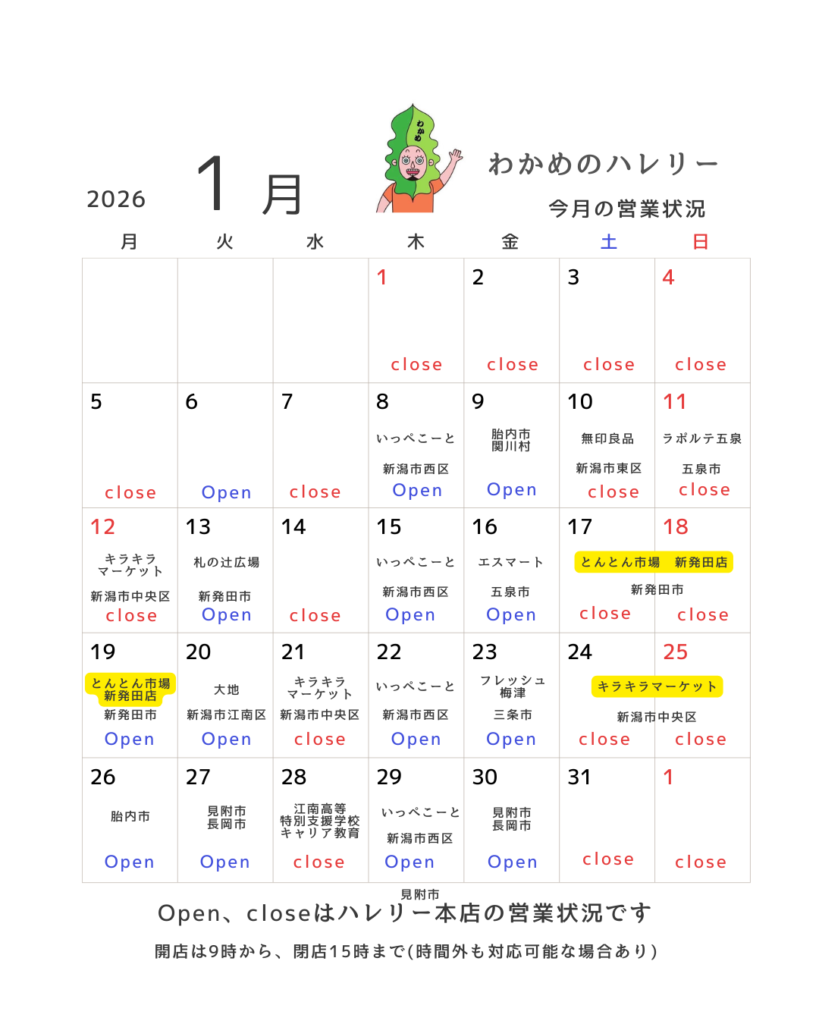 1月の店舗営業日、わかめ店長の対面販売の予定も載せましたのでご確認くださいませ!
